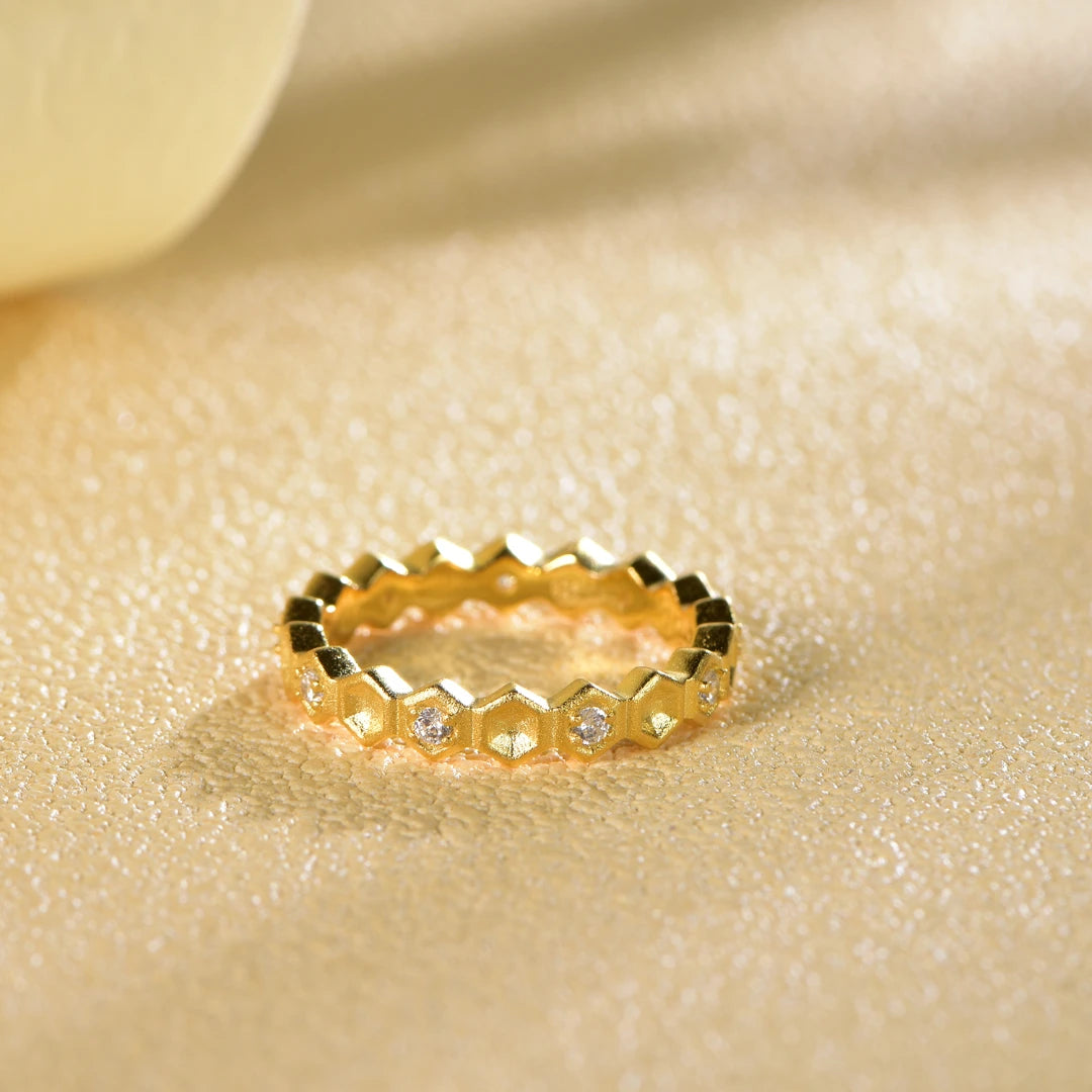 Honeycomb With Honey Ring preserves their elegance as jewelry-like accessories. The unique tiny honeybee & honeycomb pattern is very eye-catching and shows your fashion and amazing taste.